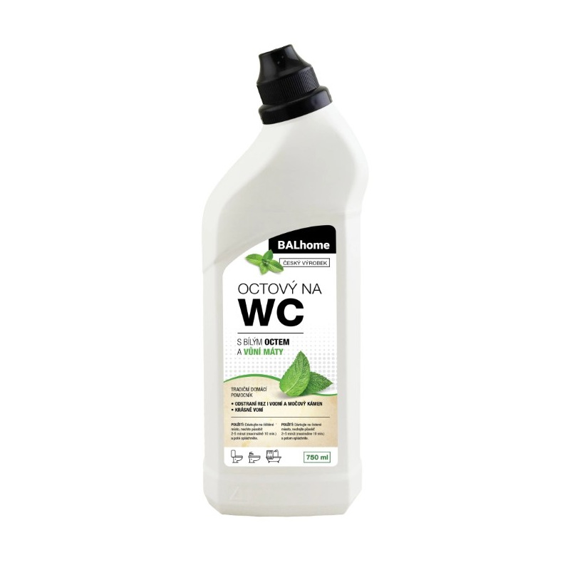 BALhome octový čistič na toalety je efektivní prostředek pro hygienické a svěží čištění WC. Díky přírodní síle octa odstraňuje vodní kámen, nečistoty i zápach a zároveň zanechává toaletu čistou a provoněnou. Svěží vůně máty neutralizuje nepříjemný zápach octa a dodává pocit čistoty. Ergonomické balení s 750 ml objemu je praktické pro snadnou manipulaci a dávkování.