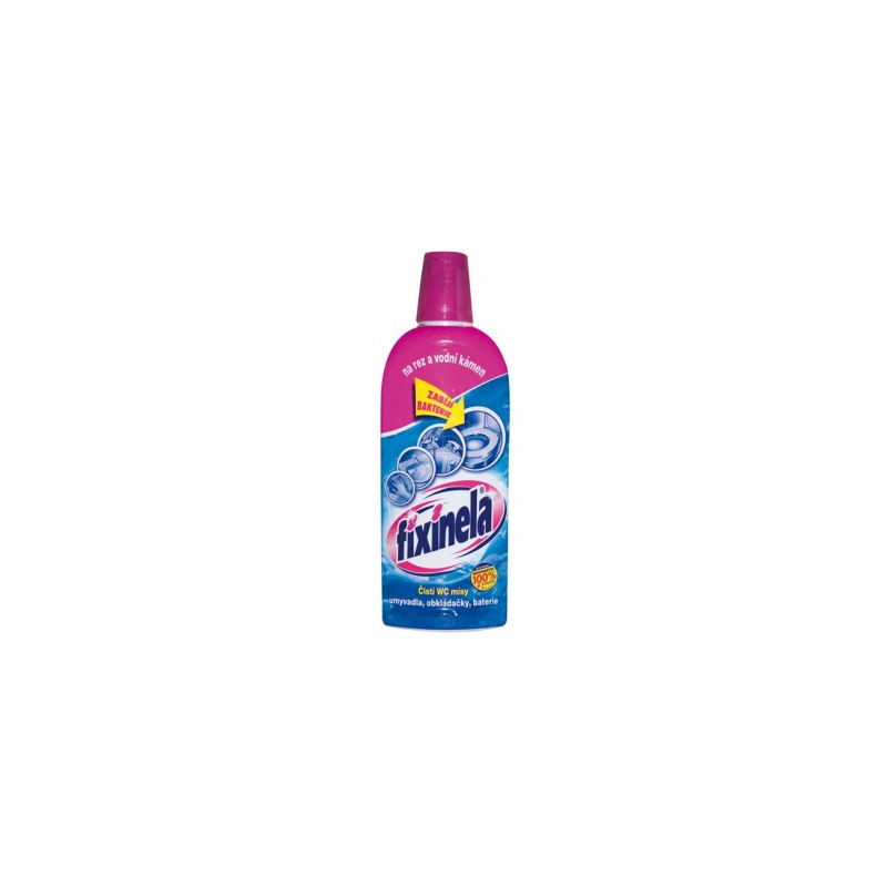 Fixinela 500 ml odstraňuje rez a vodní kámen s extrémní silou a rychlostí. Tekutý kyselý čistič na WC mísy, umyvadla, vany, obklady, vodovodní baterie. Účinně čistí, ničí bakterie, rozpouští vodní a močový kámen, odstraňuje rez a další usazeniny. Fixinela má vysoký čistící účinek, snadno a rychle uvolňuje špínu a usazeniny z povrchu.